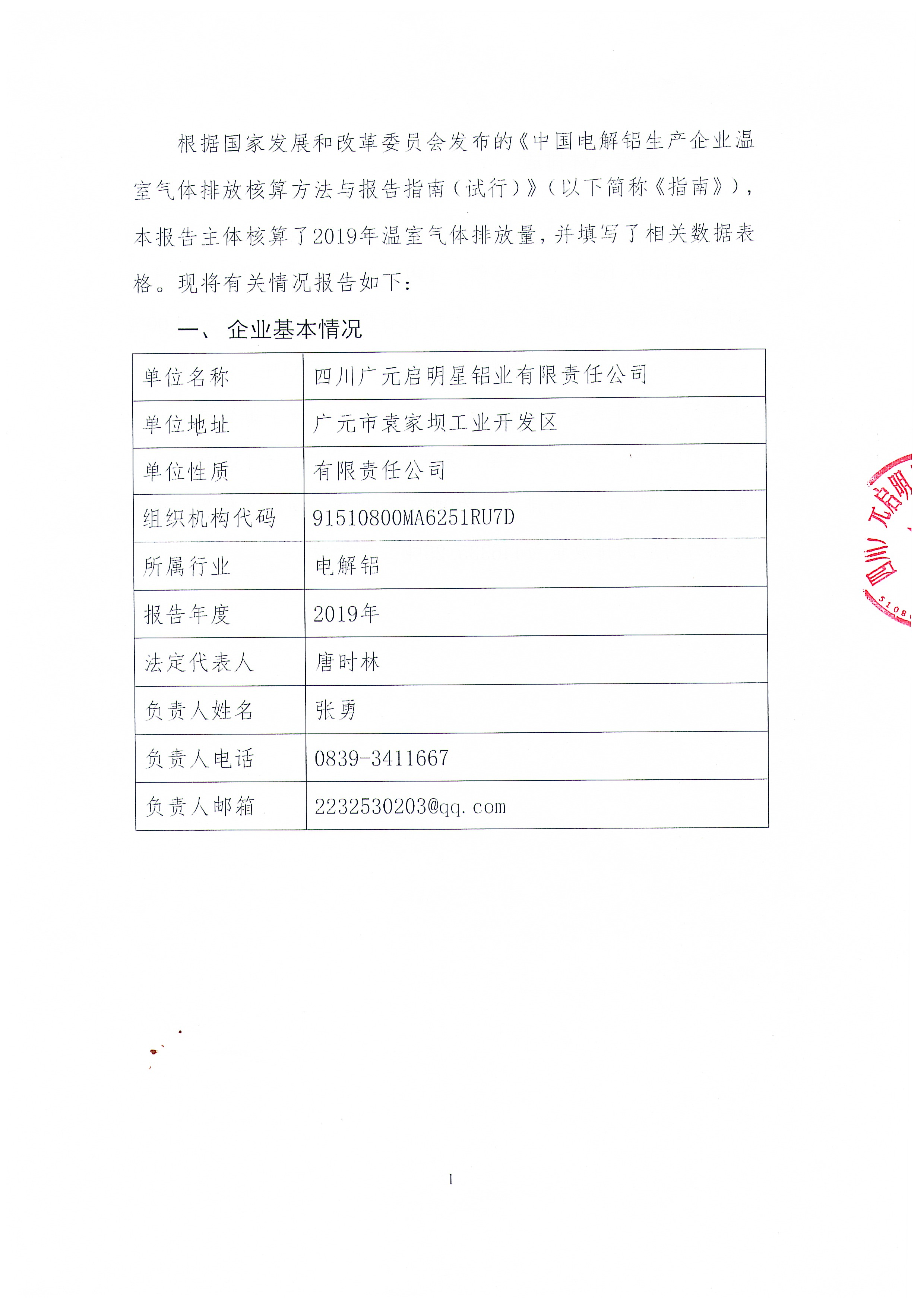 启明星公司2019年温室气体排放报告